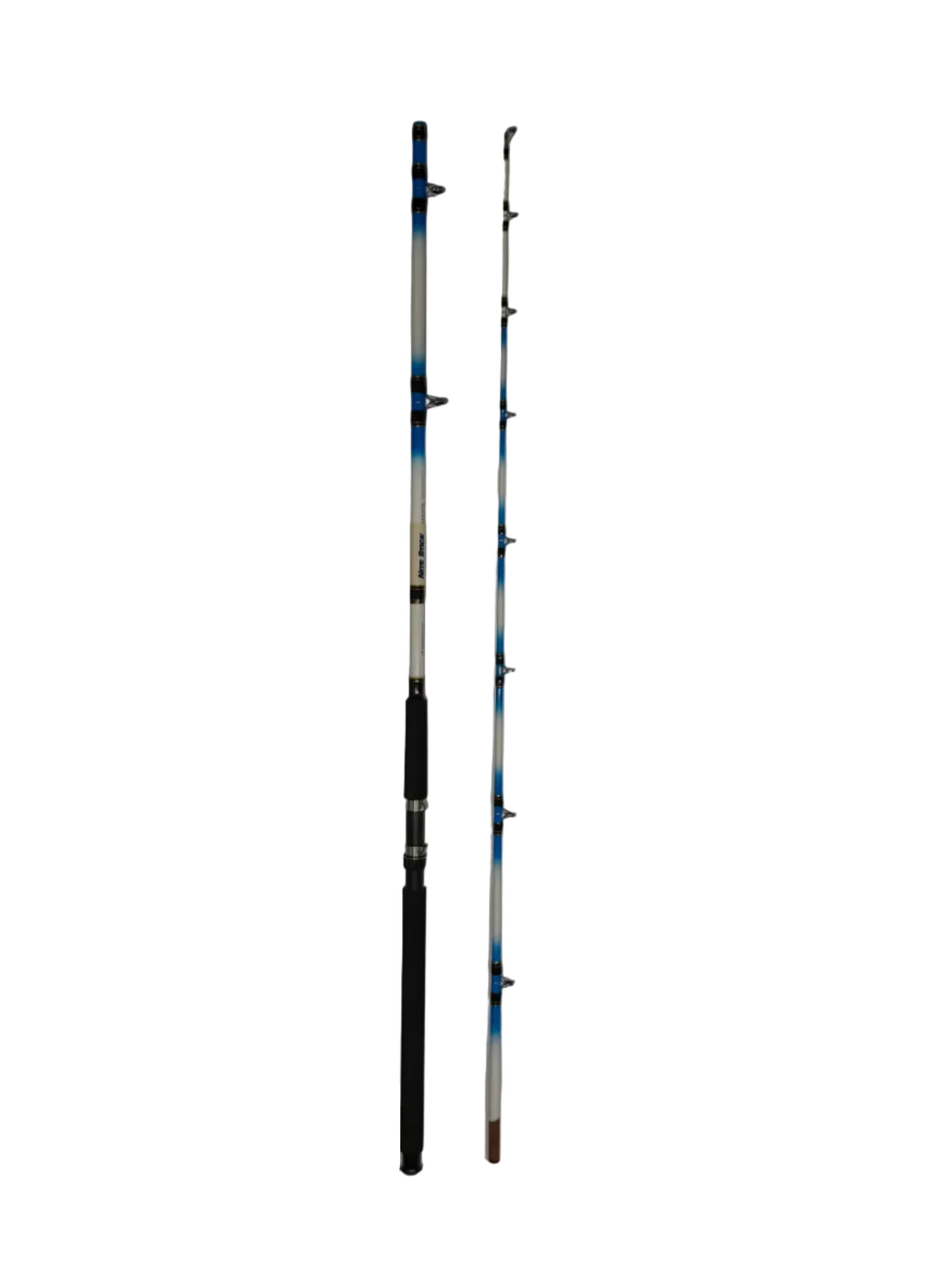 Night cat domination: American Spirit Nite Stick 10' Heavy Catfish Casting Rod (#ONG-1010AB)—36-ton graphite IM8 blank launches 6-20oz cutbait 100+yds. Forged aluminum oxide K-guides shed braid; tapered EVA grips cork-like. Oversized graphite reel seat locks big reels. Sensitive 1-12lb test tip detects whisker-bar taps. Legendary blues/flatheads to 80lb.