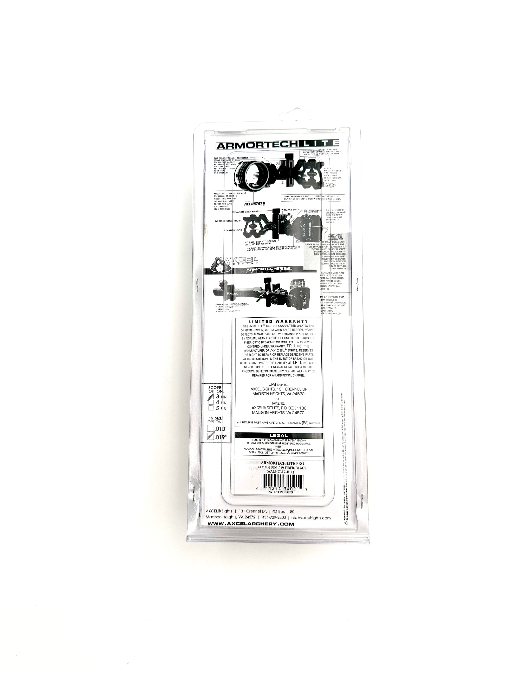 Axcel Archery Armortech Lite Sight - 41mm 3pin 0.19”