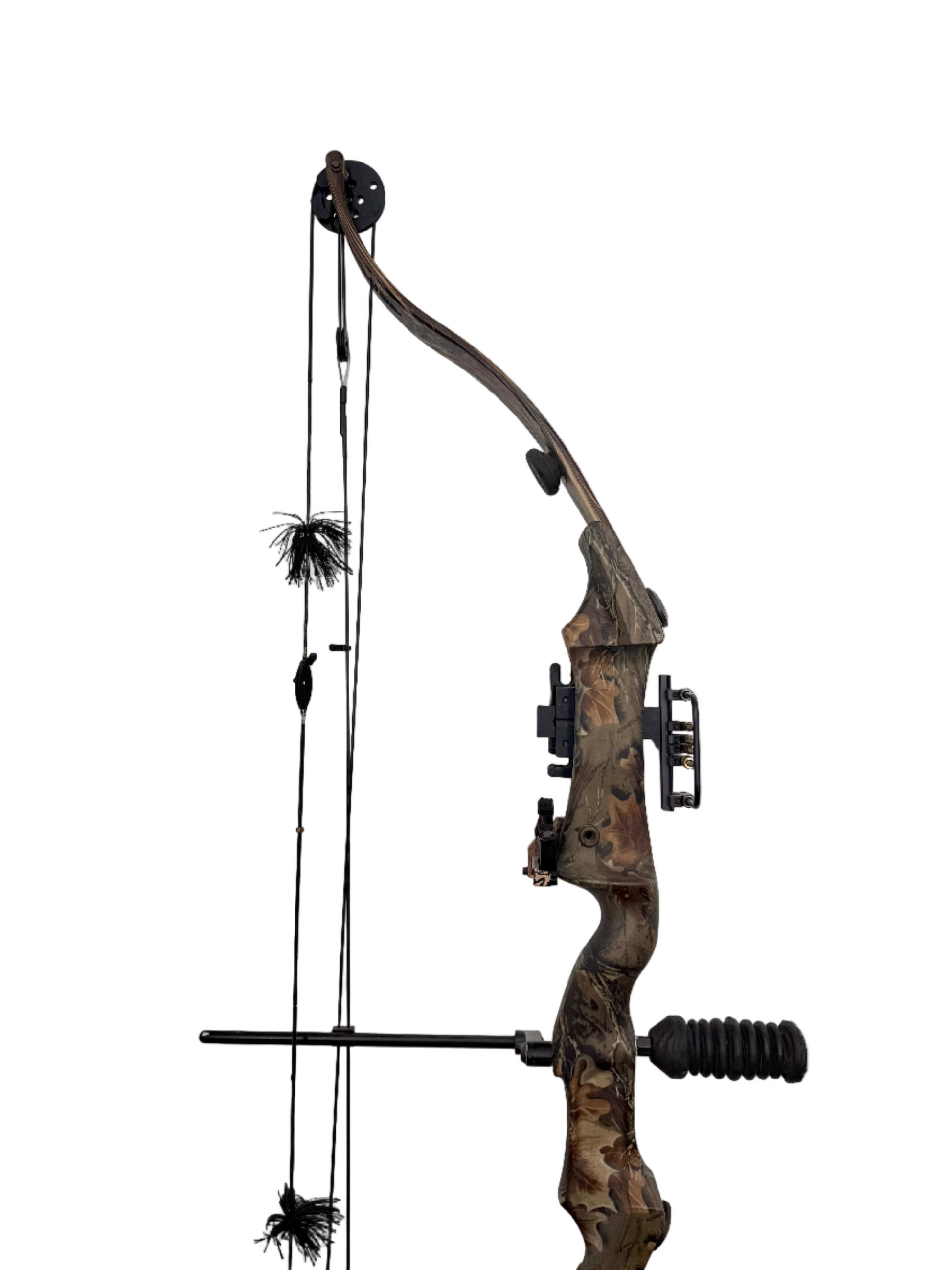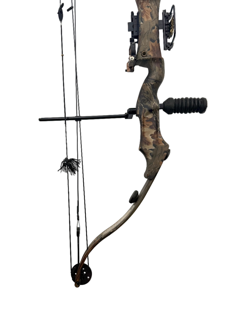 The Bear Whitetail Master Compound Bow LH for left-handed adults is a dependable, used compound bow tailored for hunting and target shooting, with adjustable draw weights and lengths for customized accuracy and ease of use. Featuring a lightweight aluminum riser, smooth draw cycle, and ergonomic design, it's ideal for beginners and intermediates, though as a pre-owned item, it may have minor wear. Available at discounted prices on our fun website, with custom photos, videos, and fast service.