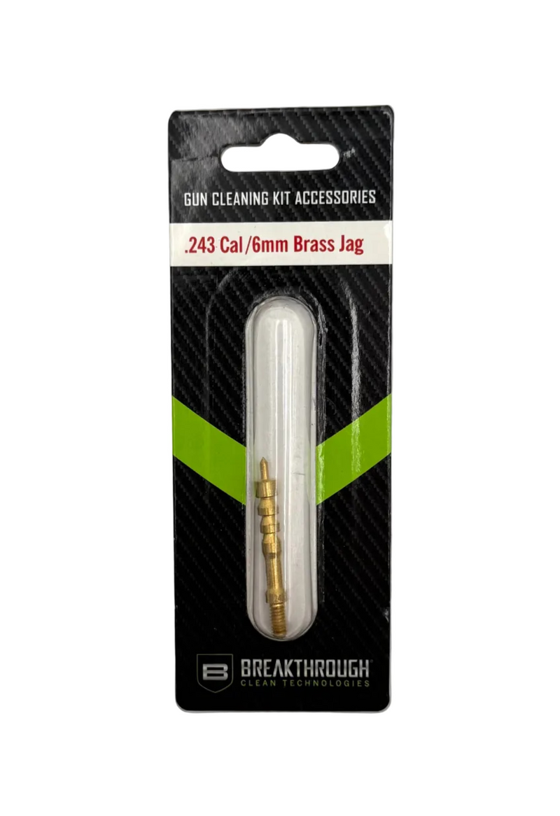 Secure perfect patches every pass with the Breakthrough Clean Technologies Brass Jag for .243 and 6mm rifles. Expertly machined solid brass fits 0.243"-0.244" bores precisely, clamping cotton patches firmly to scour copper and carbon without damage. Knurled grip for control; 8-32 threads work with all rods seamlessly. Indestructible alternative to plastic jags—lifetime warranted. Restore varmint rifle bores to glassy finish for sub-MOA precision.