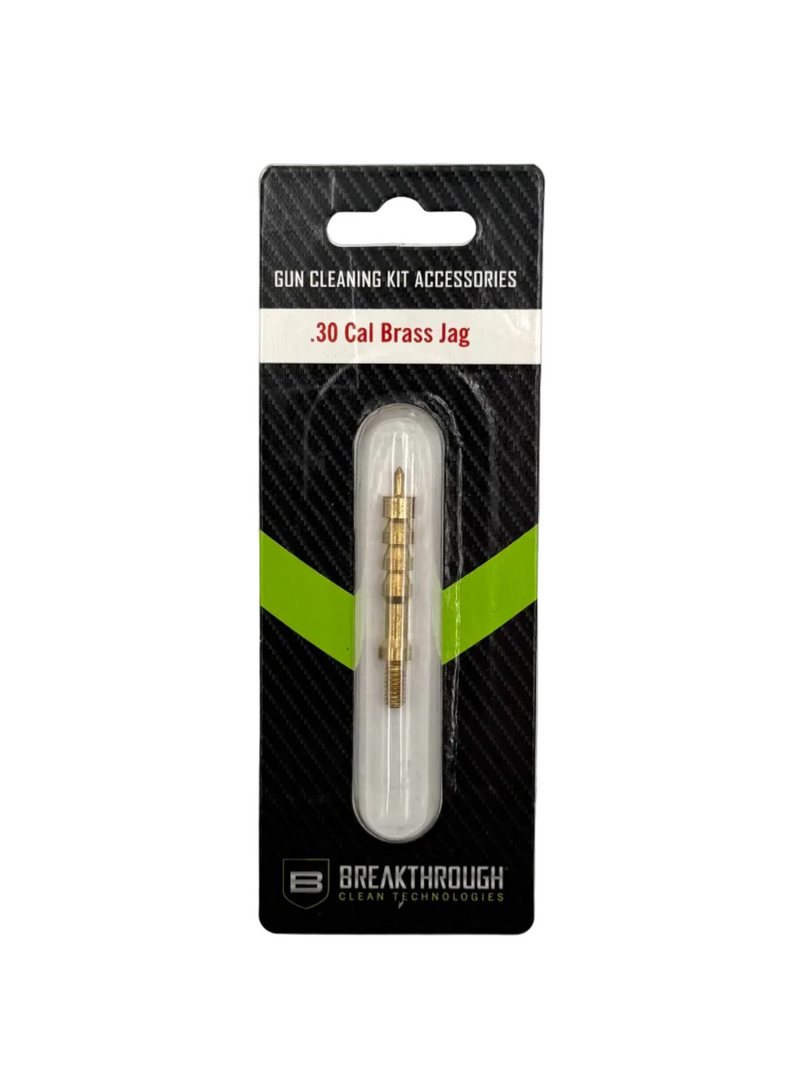 Push patches with pinpoint precision using the Breakthrough Clean Technologies .30 Caliber Brass Jag. Solid brass body machined to exact .308" bore diameter grips patches securely for thorough removal of copper fouling and powder residue in rifles or carbines. Knurled handle ensures firm control; 8-32 threading fits every rod type. Far superior to aluminum—non-marring, ultra-durable with lifetime guarantee. Essential for .30-06, .308, .300 Win Mag owners seeking peak accuracy.
