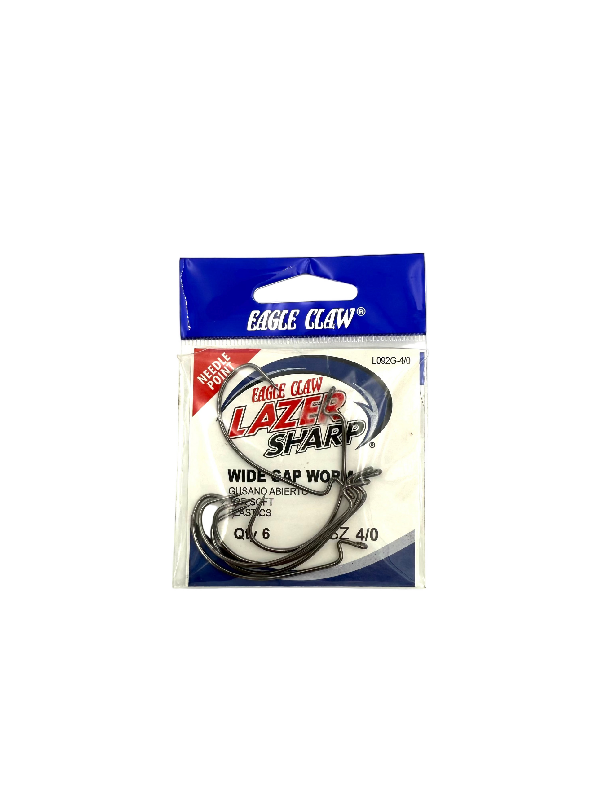 Eagle Claw Lazer Sharp Wide Gap Worm Sz 4/0 Qty 6