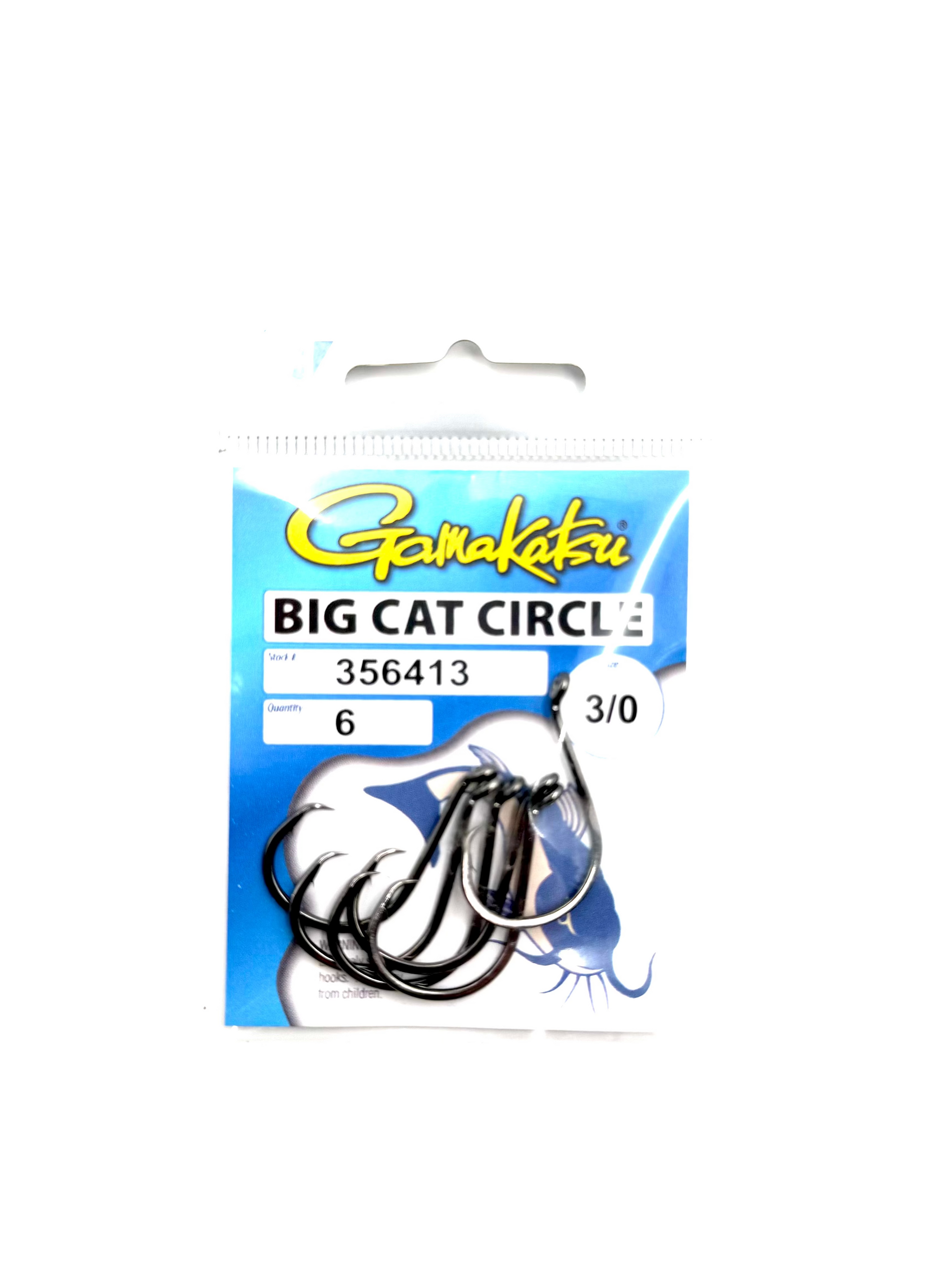 The Gamakatsu Big Cat Circle hooks in Size 3/0, available in a 6-pack, are premium fishing hooks designed specifically for targeting large catfish and other big game fish, featuring a strong, sharp point and circle hook design that promotes ethical catch-and-release by reducing gut hooking and improving hooksets during drifts, bottom fishing, or live bait rigs in freshwater rivers, lakes, or ponds. Constructed from high-carbon steel with a corrosion-resistant coating, they offer exceptional strength, durability, and reliability to handle tough fights without bending or breaking, making them a favorite among anglers for increased success rates and fish conservation. Versatile and easy to rig, this pack provides great value for serious fishermen. Available at discounted prices on our fun website, with custom photos, engaging videos, and fast customer service to support your fishing adventures.