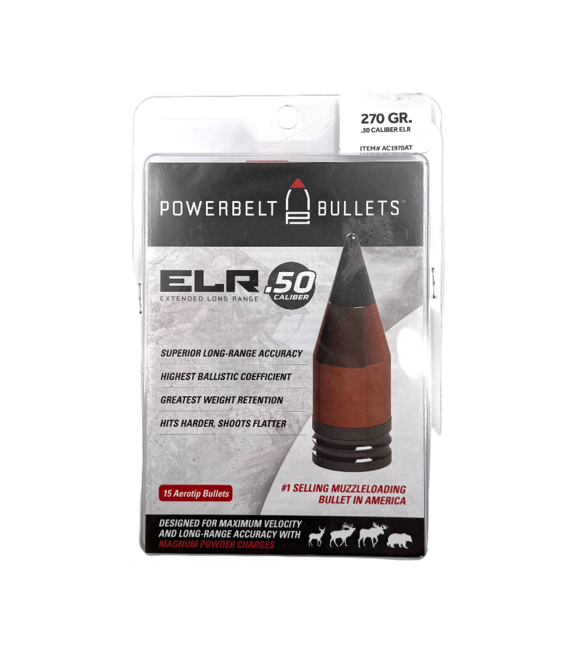 - Key features: ELR design with aerotip for enhanced ballistic coefficient and terminal expansion; copper plating for smooth loading, corrosion resistance, and reduced fouling; optimized for high-velocity loads with black powder or substitutes; available in 270 grains for balanced weight and stability.