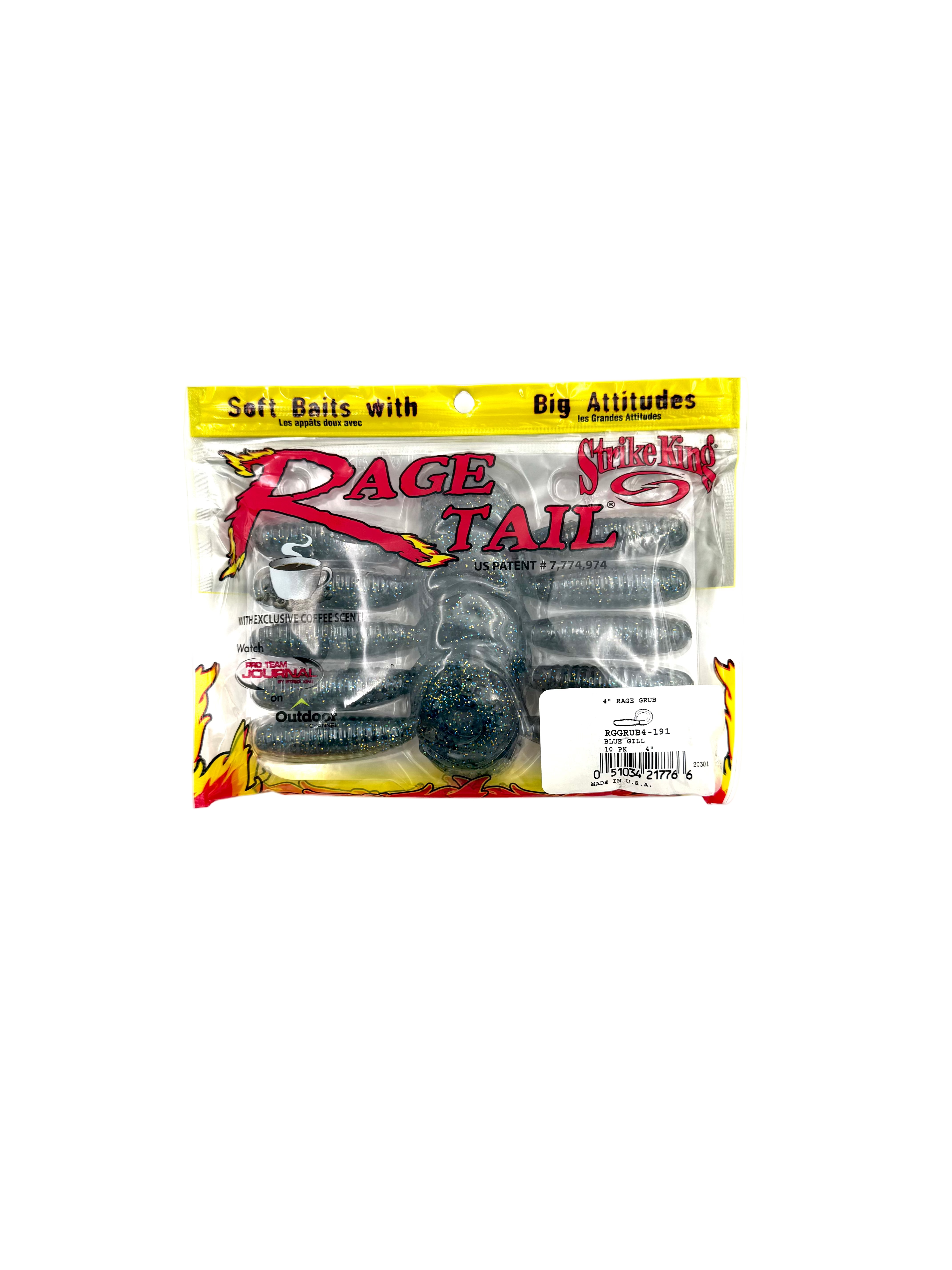 Strike King Rage Tail 4” Rage Grub - Blue Gill 10pk