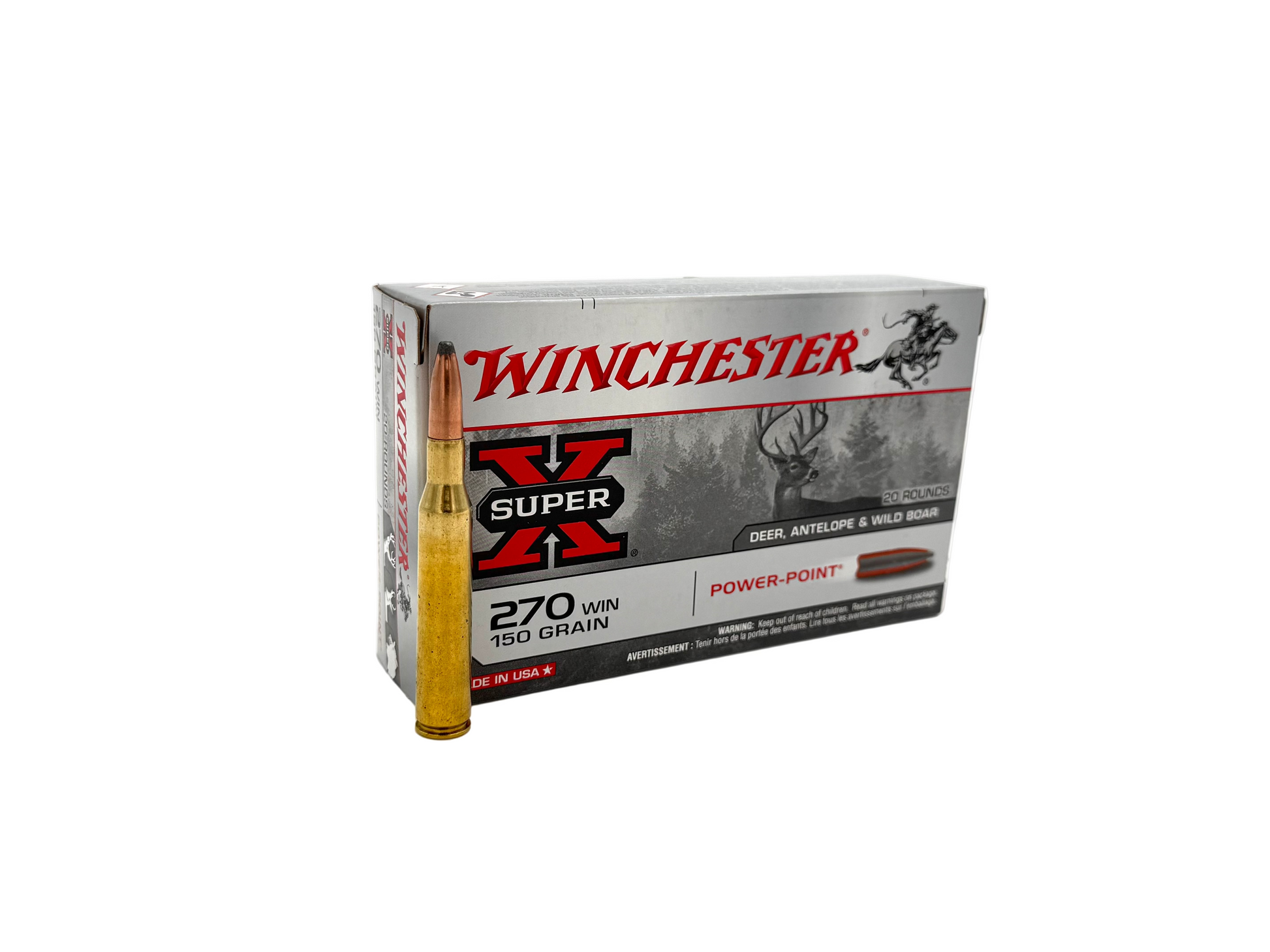 - Specifically loaded for 270 Winchester with 150-grain Power Point bullets, optimized for big-game hunting with an exposed soft point for immediate mushrooming and effective penetration on impact.